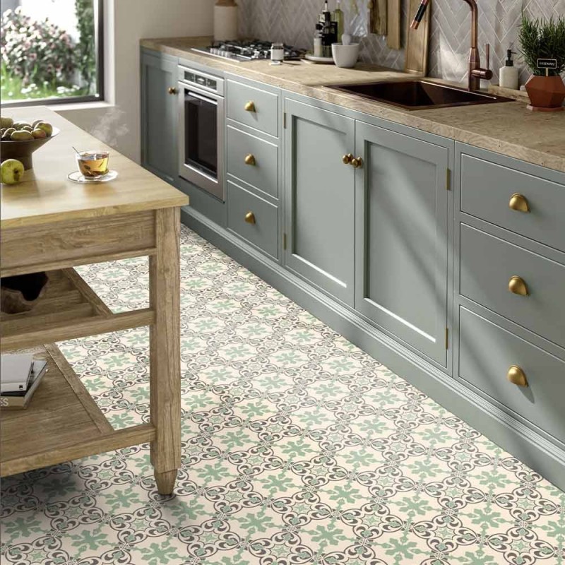 Ce revêtement de sol pvc décor carreau ciment vert d'une bonne résistance à l'usure quotidienne, ainsi qu'une réduction sonore de 20dB, cette gamme est une solution de revêtement de sol idéale pour toutes les pièces de votre maison, y compris les chambres, les salons, les cuisines et même les salles de bains. Son envers mousse procure une sensation chaleureuse lorsque l'on marche pieds nus.