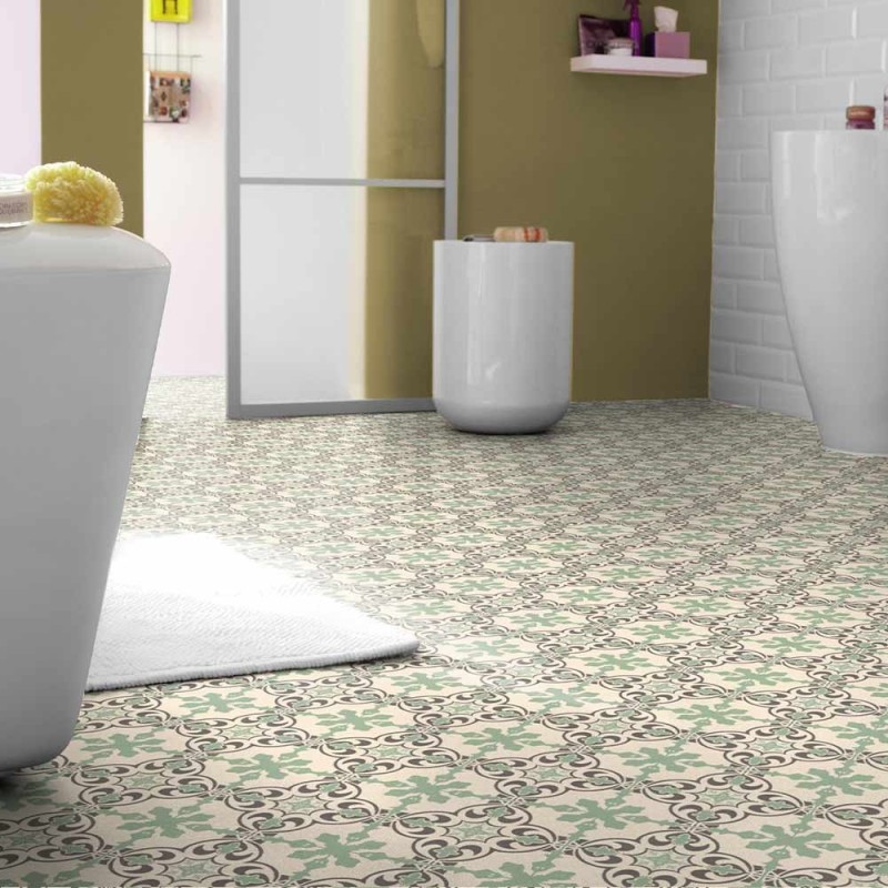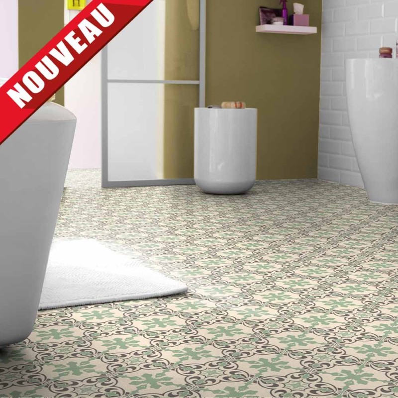 Sol PVC en rouleau décor carreau ciment vert largeur 4m ep.2,6mm passage intensif habitat