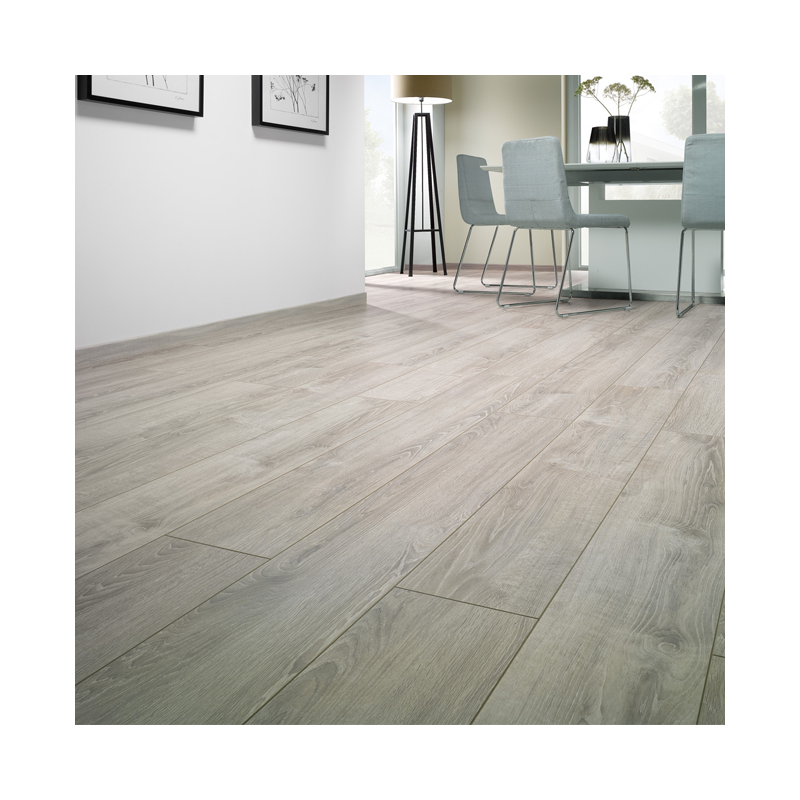 Revêtement de sol stratifié décor chêne sardaigne 12mm , très resistant au passage. La très belle finesse de son décor et les 4 chanfreins apporteront une véritable authenticité. L'aspect veinage suit parfaitement le décor du bois.Ce sol stratifié convient également pour un usage commercial.