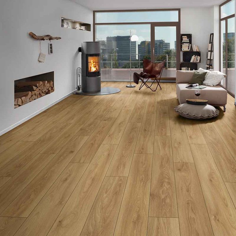 Sol Stratifié Chêne Caramel 8mm - 4 Chanfreins Hydrofuge