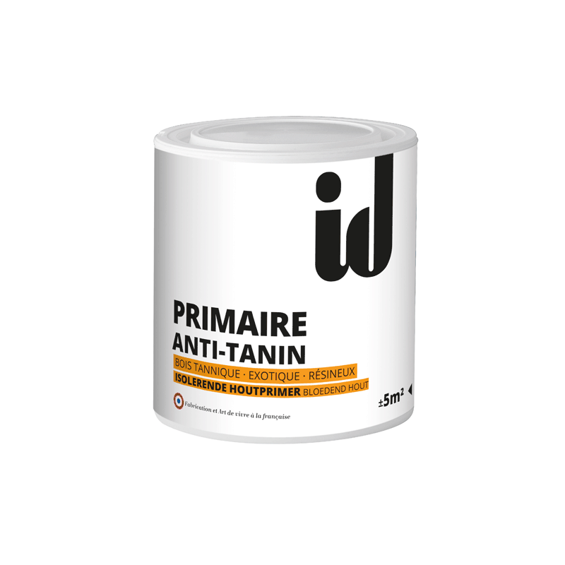 Le primaire anti-tanin est une sous-couche blanche intérieur extérieur pour meubles et boiseries bruts. Elle bloque les remontées de tanin, huile, résine et évitela formation de taches. Elle facilite l'accrochage et prolonge la tenue des peintures. Elle s'utilise sur bois tanniques (chêne, chataignier...), bois exotiques et résineux. Elle est recouvrable par toutes les peintures bois acryliques et glycéro.