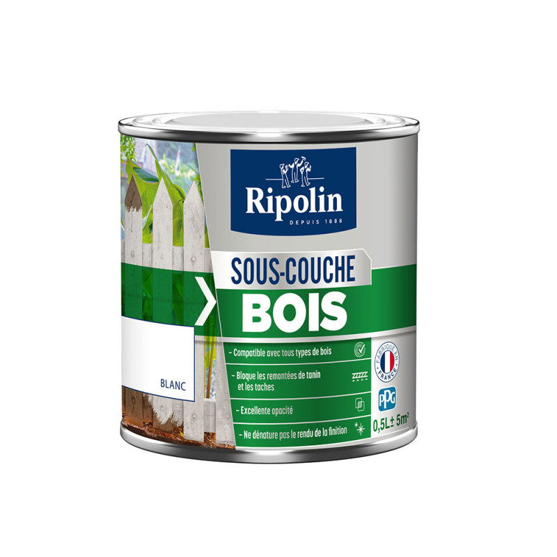 Sous-couche Ripolin compatible avec tous les types de bois. Elle bloque les remontées de tanin et les taches. Son excellente opacité et sa structure fine vous garantissent un résultat optimal.