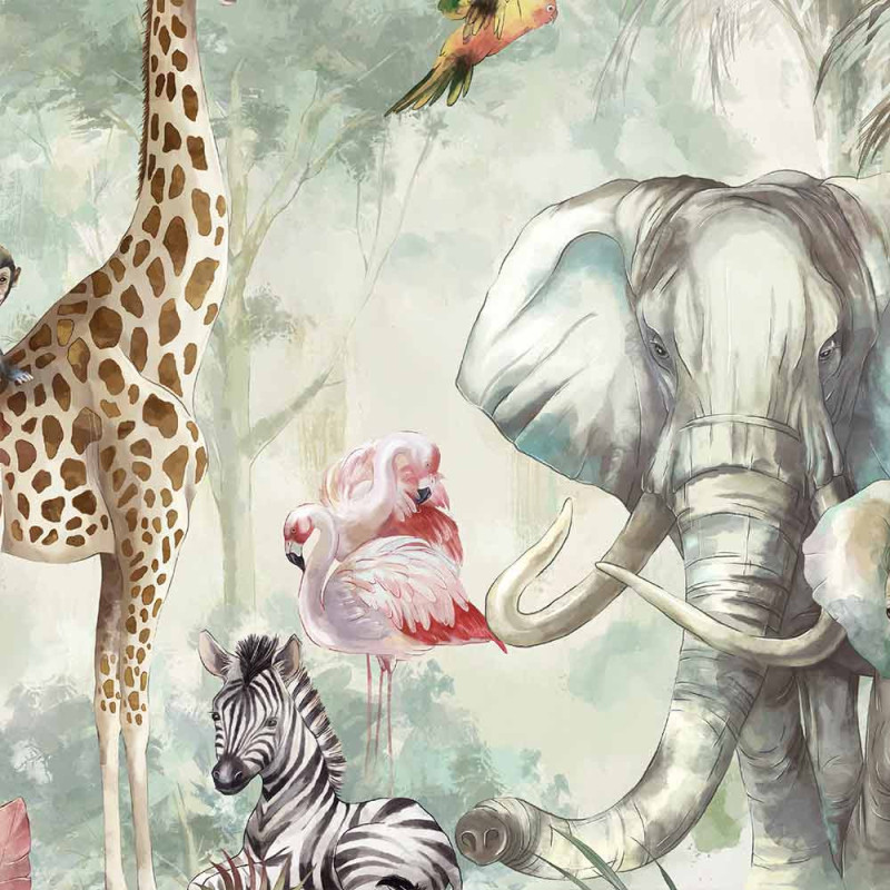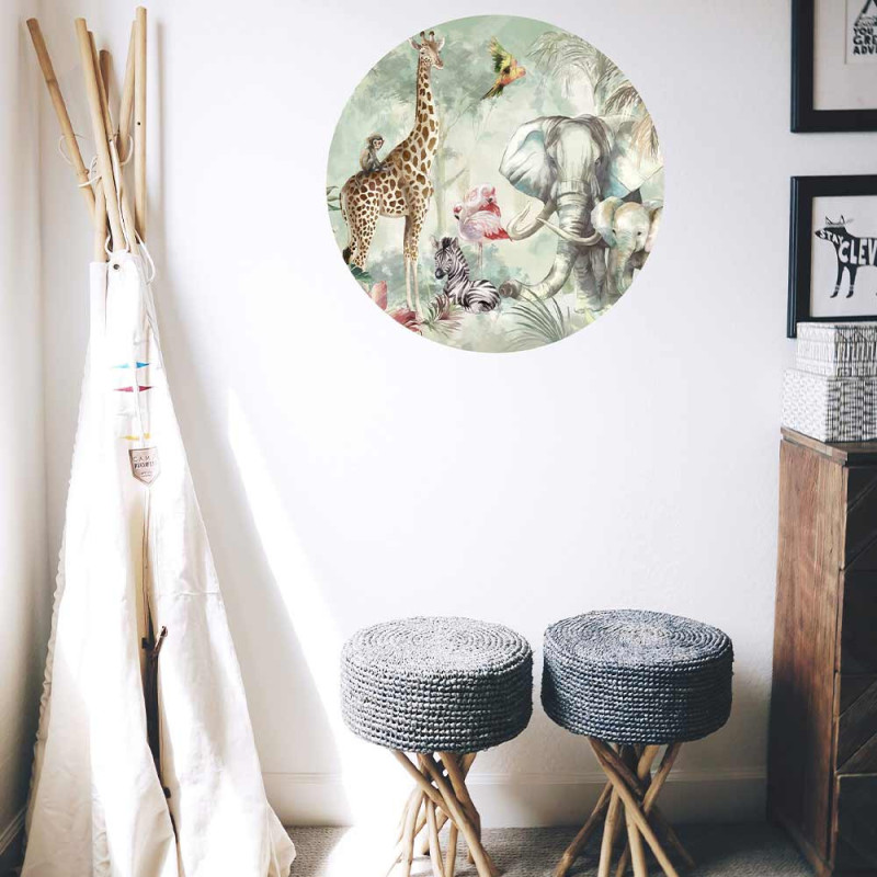Sticker mural adhésif décor jungle enfant vert 48 x 68 cm