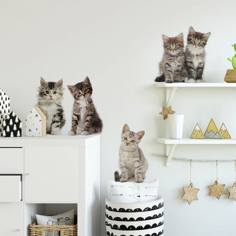 Stickers mural petit chat. Facile à poser, il est idéal pour apporter une décoration à votre intérieur sans abîmer le mur. Facile d'entretien. Nettoyage avec une éponge humide à l’eau savonneuse.