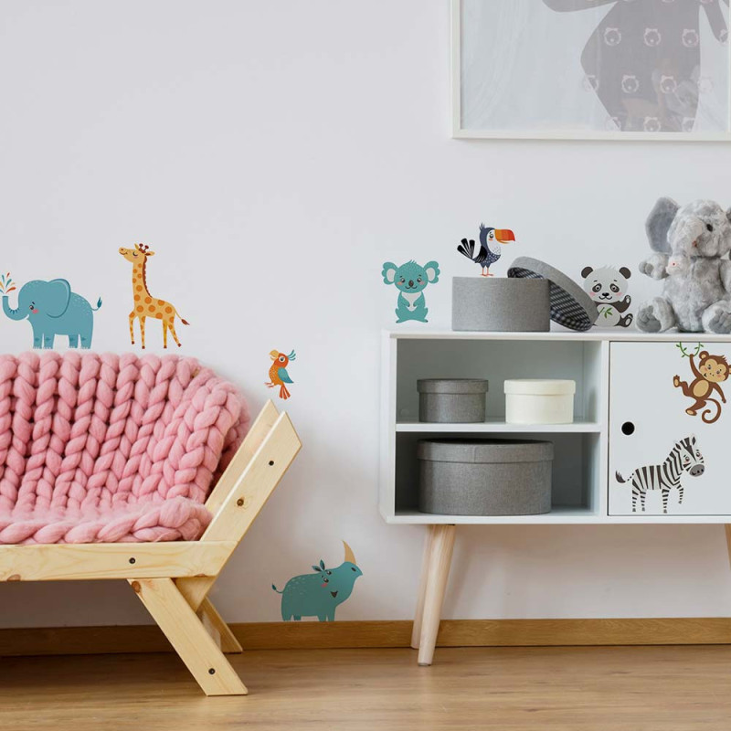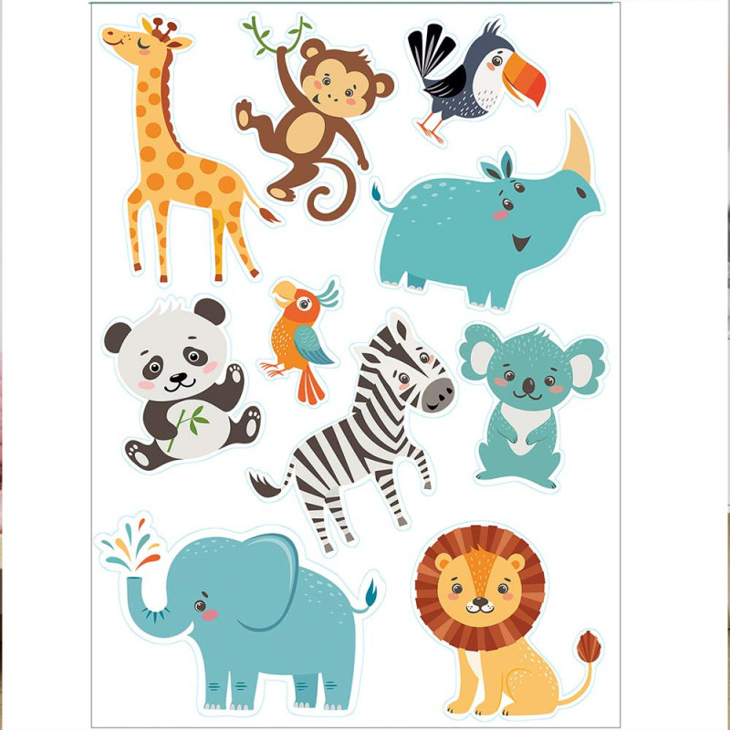 Stickers adhésif mural petits animaux du zoo. Facile à poser, il est idéal pour apporter une décoration à la chambre de vos enfants, sans abîmer le mur. Facile d'entretien. Nettoyage avec une éponge humide à l’eau savonneuse.