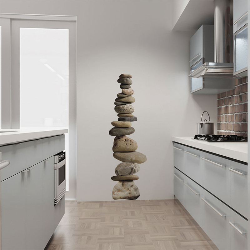 Stickers adhésif mural motif galet. Facile à poser, il est idéal pour apporter une décoration exotique à votre intérieur, sans abîmer le mur. Facile d'entretien. Nettoyage avec une éponge humide à l’eau savonneuse.
