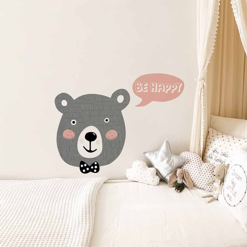 Stickers adhésif mural motif petit ours. Facile à poser, il est idéal pour apporter une décoration exotique à votre intérieur, sans abîmer le mur. Facile d'entretien. Nettoyage avec une éponge humide à l’eau savonneuse.