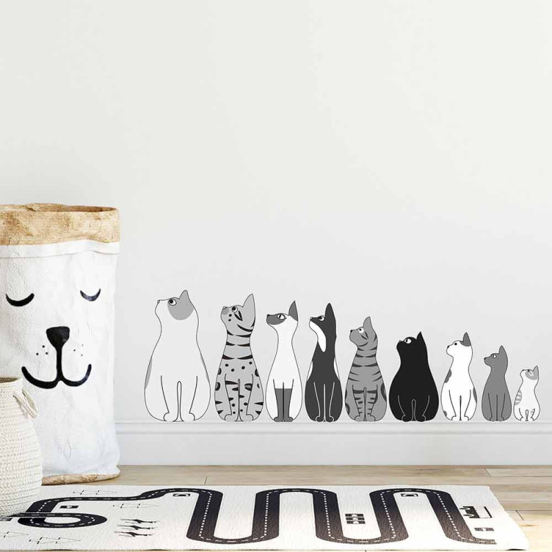 Stickers adhésif mural motif petits chats. Facile à poser, il est idéal pour apporter une décoration exotique à votre intérieur, sans abîmer le mur. Facile d'entretien. Nettoyage avec une éponge humide à l’eau savonneuse.