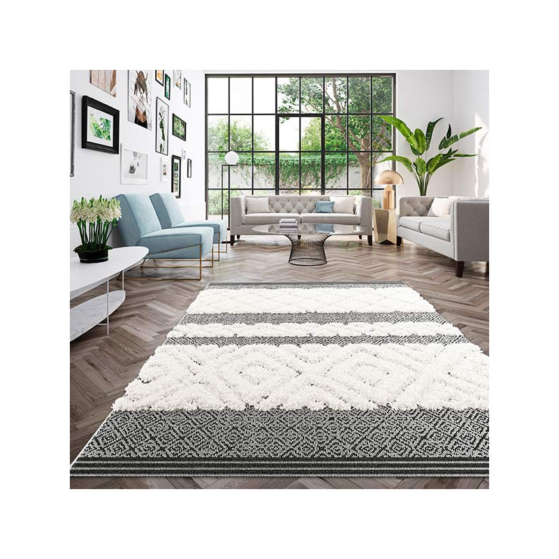 Un tapis à double structure de fils qui apportera une touche d'originalité dans votre pièce. Son décor est une invitation au voyage. Il est de plus très résistant aux taches. Disponible dans d'autres dimensions.