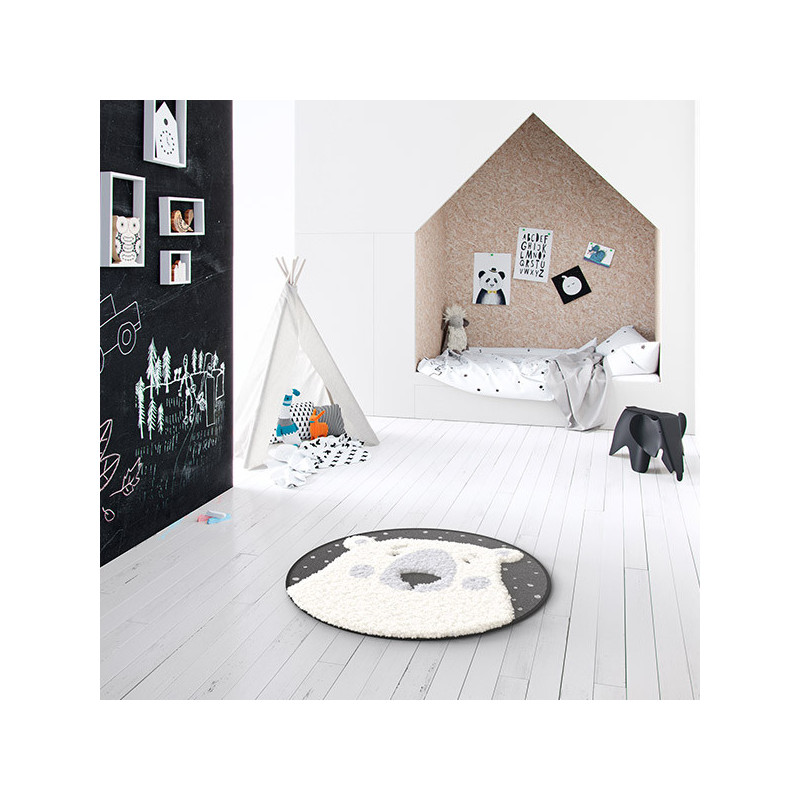 Tapis rond tête d'ours pour donner de la douceur à la chambre de vos enfants. Ce tapis possède un design super tendance et sobre !