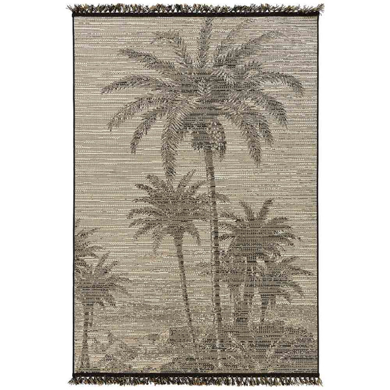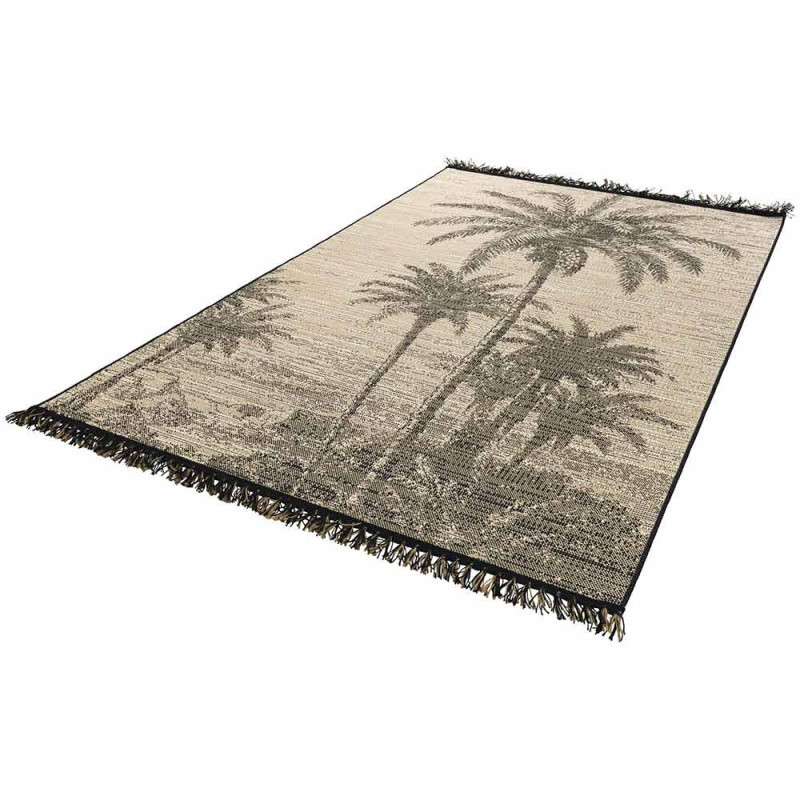 Tapis oekotex avec motif palmier avec des franges 160 x 230 cm. La certificiation oekotex garantie aucune présence de produits nocifs...