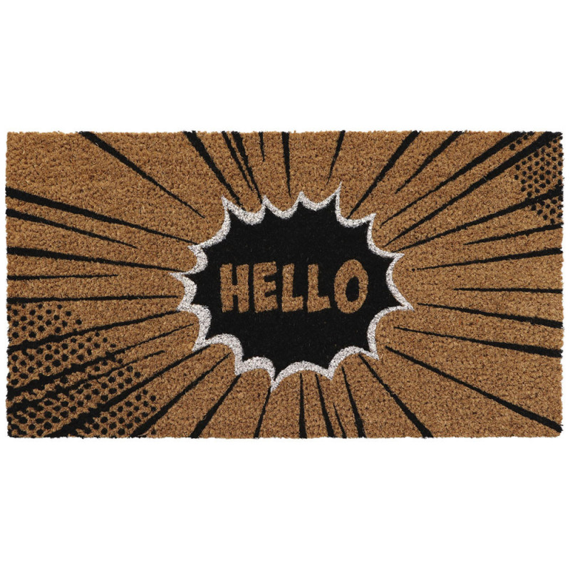 Tapis coco Hello 33x60 - Fibre naturelle grattante, message original.