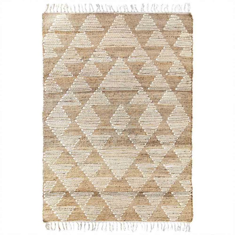 Ce tapis de la collection PRIMITIVE allie un mélange de chanvre pour le fond et de laine épaisse pour les motifs. Son naturel est idéal pour apporter une touche de chaleur et de caractère à votre intérieur.