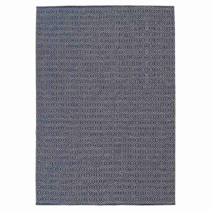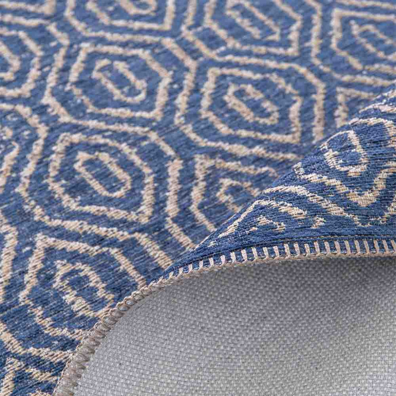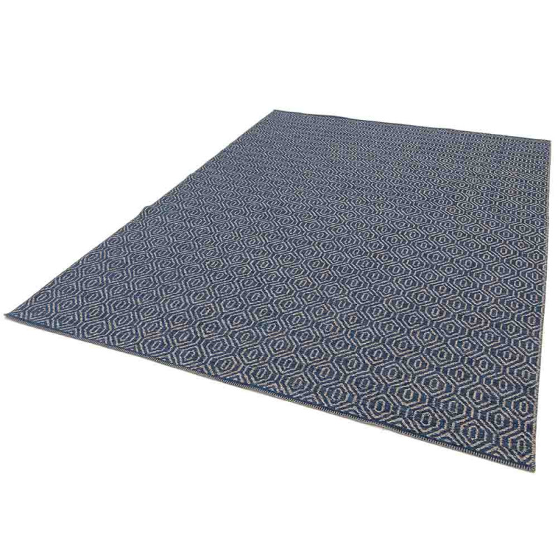 Tapis tissé plat à motif géométrique bleu et gold 160x230