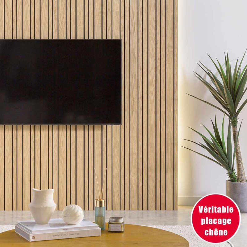 Lot de 2 Panneaux tasseaux de bois placage chêne clair 2500x300x0.6mm