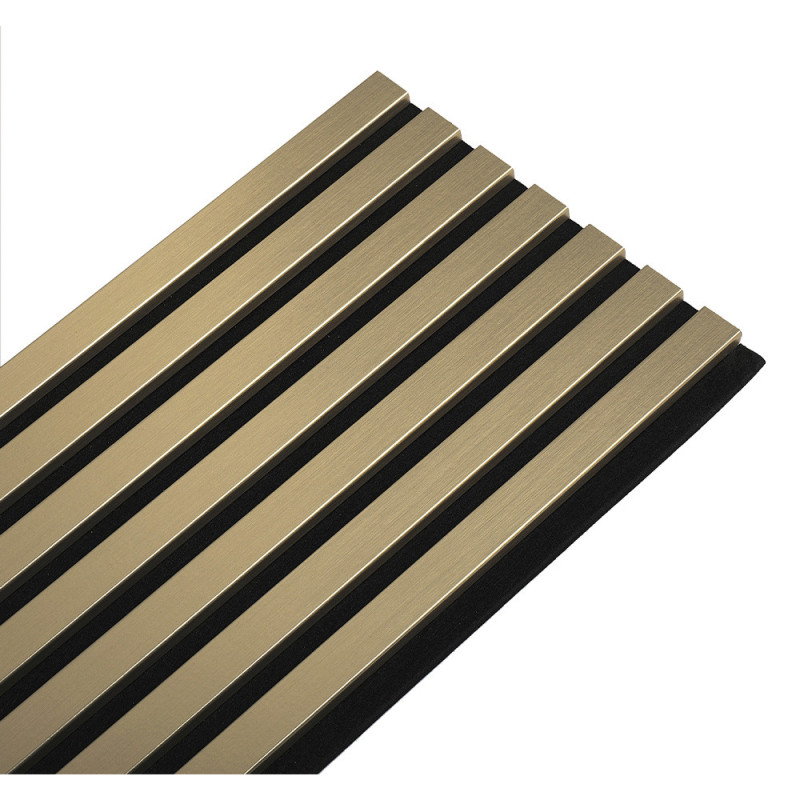 Ajoutez une note contemporaine à votre décoration intérieure avec le panneau tasseaux de bois finition or sur feutrine noire Vertigo, dimensions 250x30x1.9 cm. Ce panneau mural acoustique se distingue par son effet doré élégant, idéal pour sublimer un salon, une entrée ou un espace professionnel avec une ambiance chic et chaleureuse. Conçu pour allier design et performance, il est composé de tasseaux en MDF plaqués effet or, fixés sur une feutrine polyester noire de 4 mm qui contribue à réduire les bruits du quotidien. Grâce à sa classe acoustique E et un coefficient d’absorption de 0,2, testé en laboratoire, il améliore le confort sonore de vos pièces tout en habillant vos murs avec style. Fabriqué à partir de bois issu de forêts certifiées FSC, ce revêtement mural allie esthétique haut de gamme, praticité et engagement écologique pour un intérieur soigné et durable.