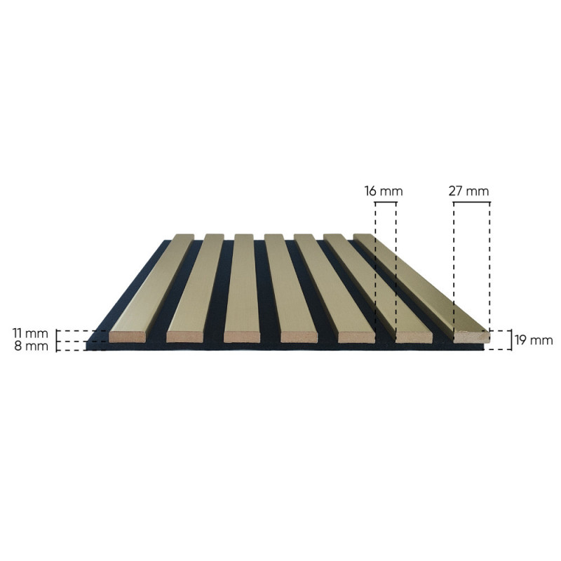 Panneau tasseaux de bois or feutrine noir 250x30x1.9cm