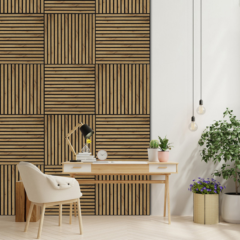 Panneau tasseaux de bois MDF chêne pecan 60x60cmx9mm