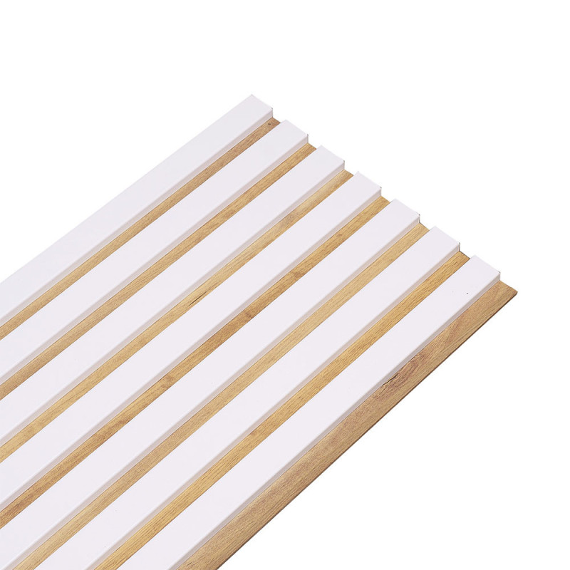 Panneau tasseaux de bois MDF blanc sur fond rigide décor chêne