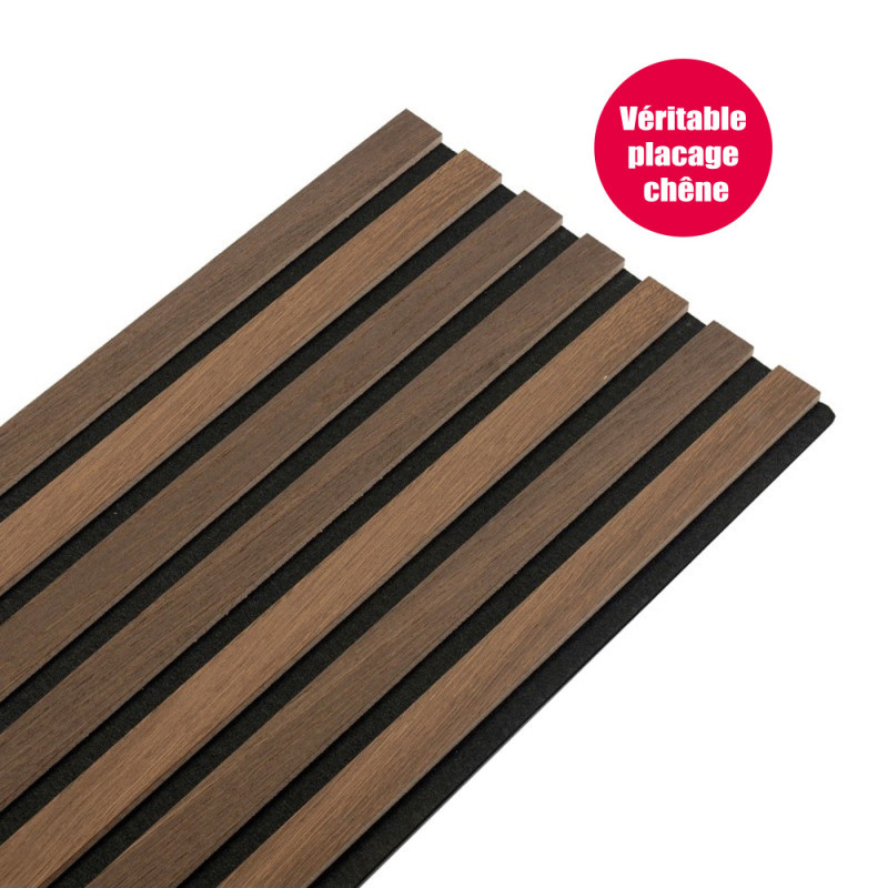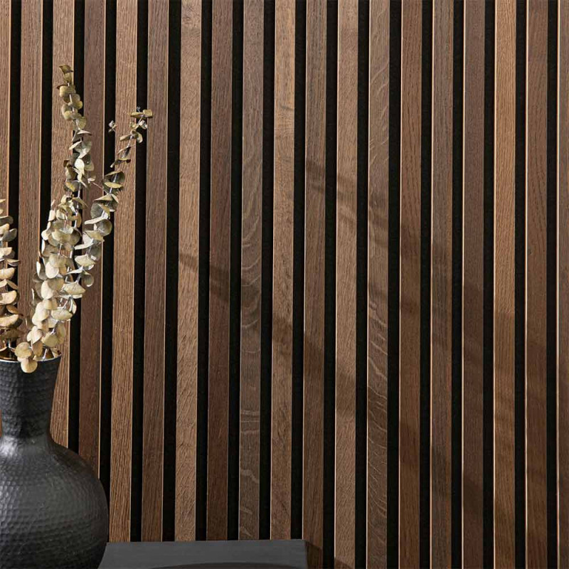 Apportez de la modernité à votre intérieur avec le panneau tasseaux de bois chêne foncé Vertigo avec feutrine noire (30 x 250 x 1 cm). Facile à poser et léger, il permet de transformer vos murs en un clin d’œil, que ce soit derrière une TV, en tête de lit ou pour habiller un pan de mur entier. Ses lamelles en bois élégantes associées à une feutrine noire ajoutent instantanément une touche design et cocooning à un intérieur. Ils sont simples à découper et adapter. Idéal pour les projets DIY, même débutants, ce panneau est disponible en plusieurs coloris et s'accorde parfaitement à toutes vos envies déco !