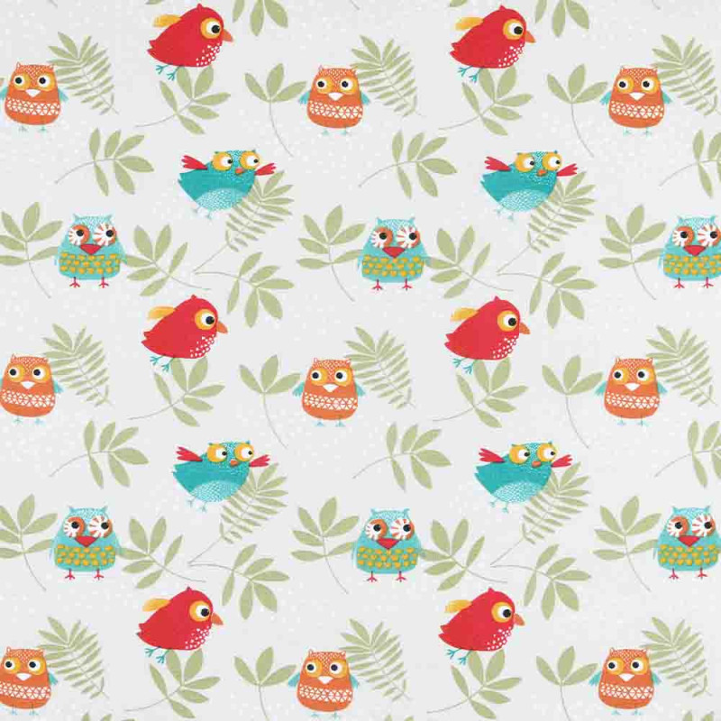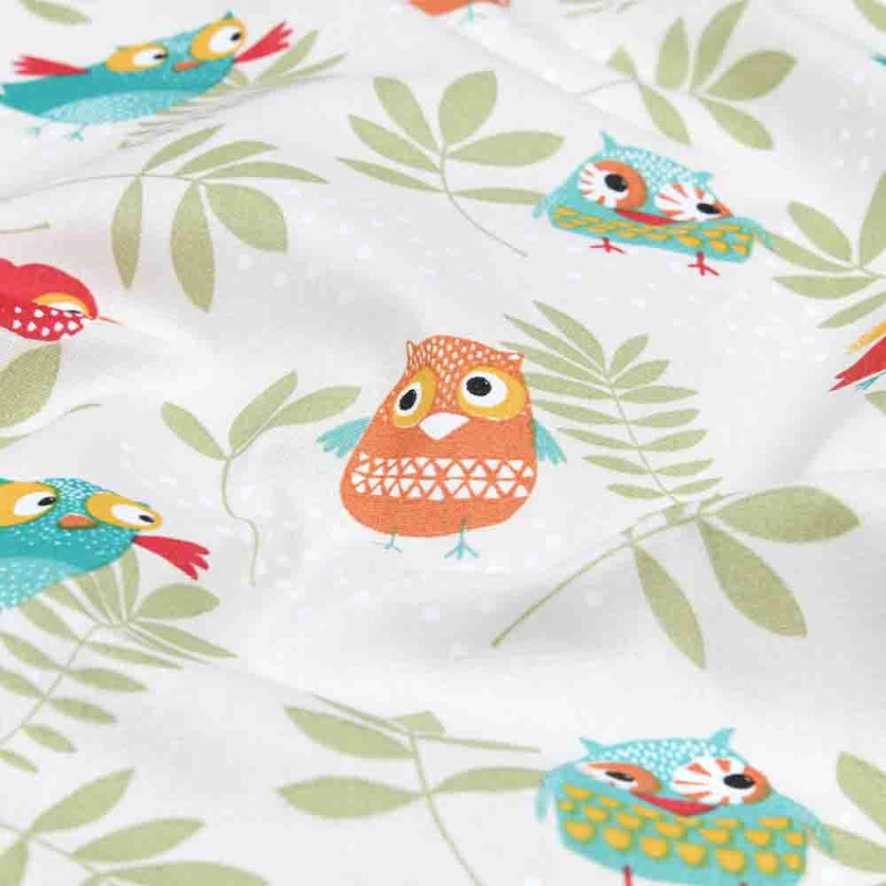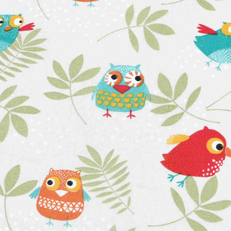 Tissu 100% coton imprimé hiboux multicolore 160 cm