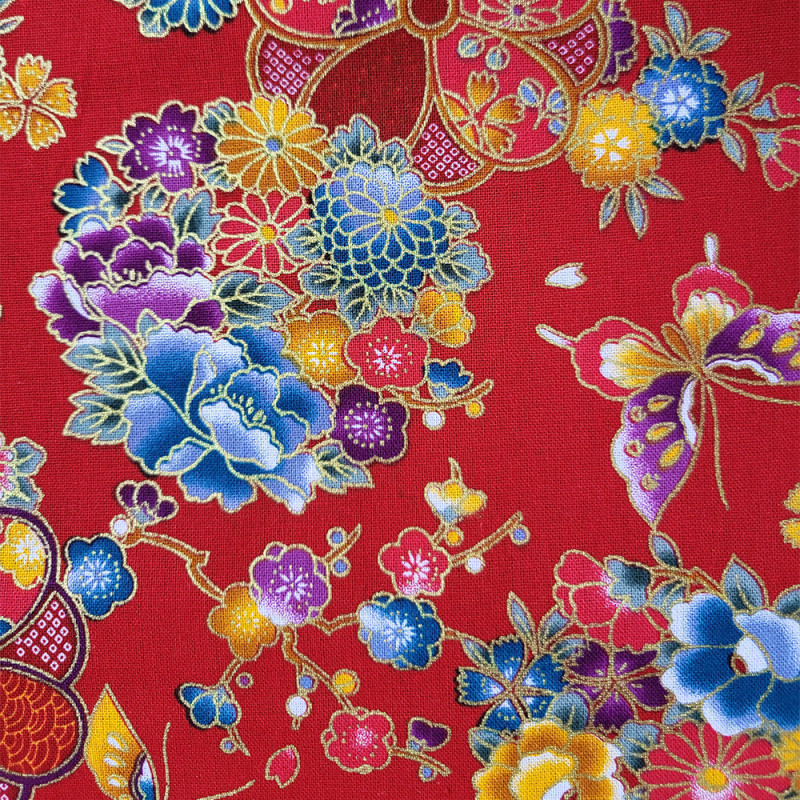 Tissu coton japonisant floral haute qualité rouge 140 cm