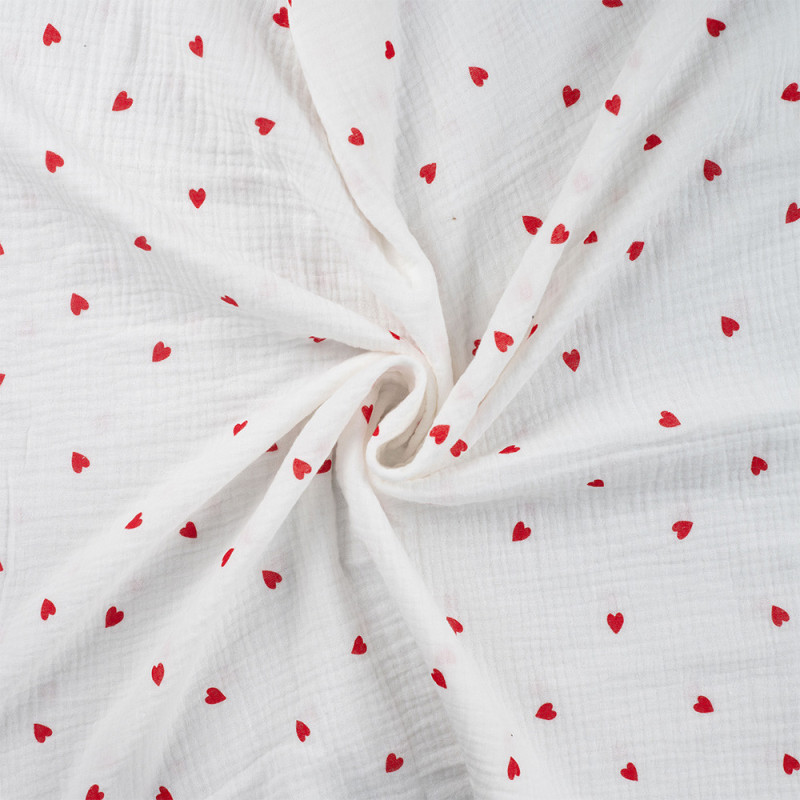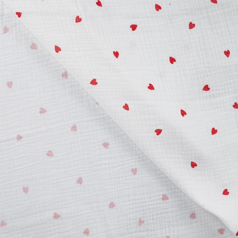 Tissu double gaze à petit coeur rouge et blanc 135cm