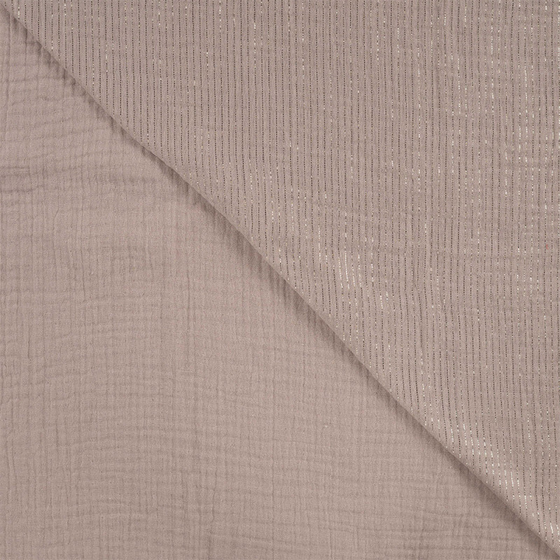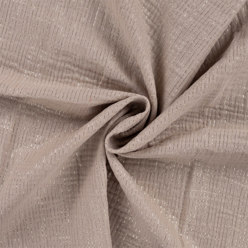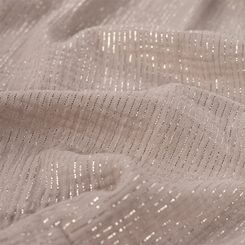 Tissu double gaze à rayure lurex beige 135cm