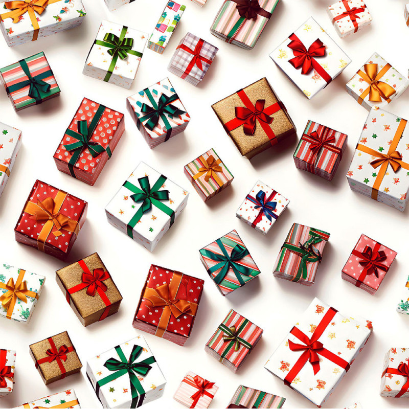 Créez des décorations et accessoires festifs uniques avec ce tissu 100% coton imprimé 3D aux motifs de paquets cadeaux multicolores, largeur 140 cm. Parfait pour confectionner nappes, sacs, coussins ou vêtements de Noël, ce tissu allie qualité et originalité.