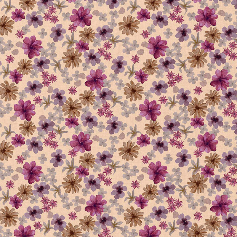 Tissu 100% coton floral violet et pêche 150 cm