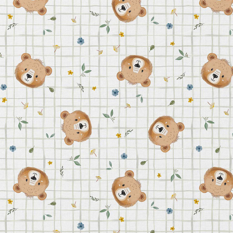 Avec sa largeur de 150 cm, ce tissu coton est idéale pour faire des coussins, housses, sacs, accessoires déco ... Son motif tendre représentant de petites têtes d’ourson sur fond clair, apporte un charme, idéale pour créer un univers doux.