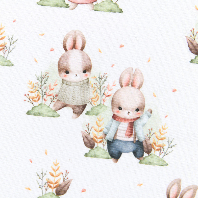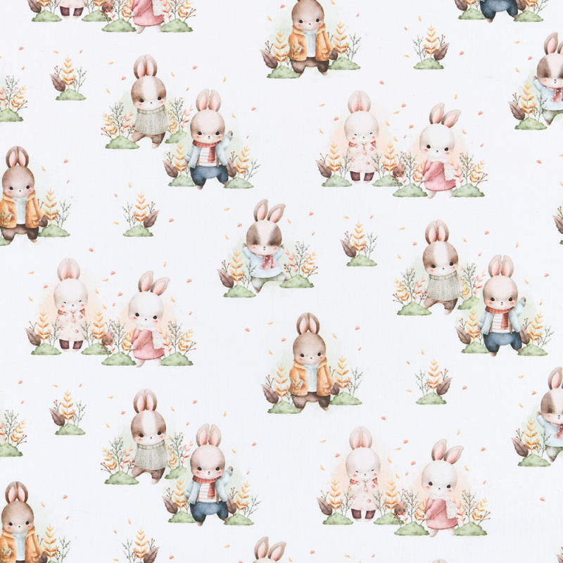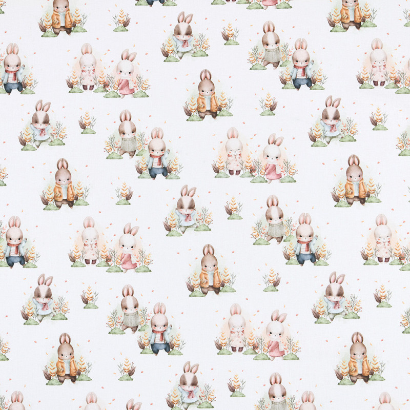 Tissu 100% coton lapin multicolore et blanc 140 cm