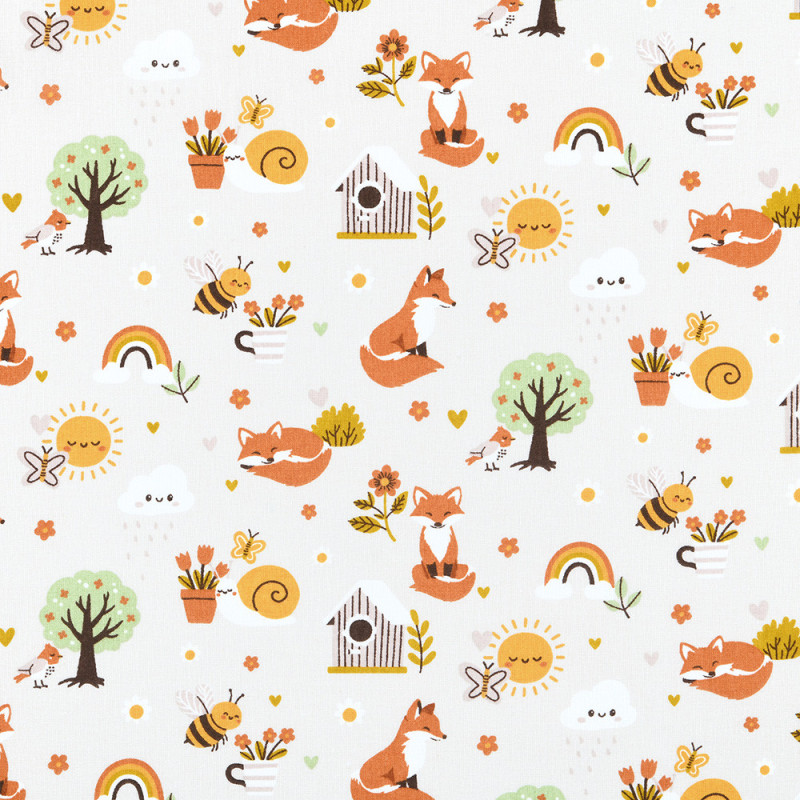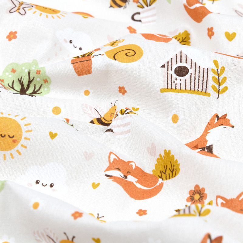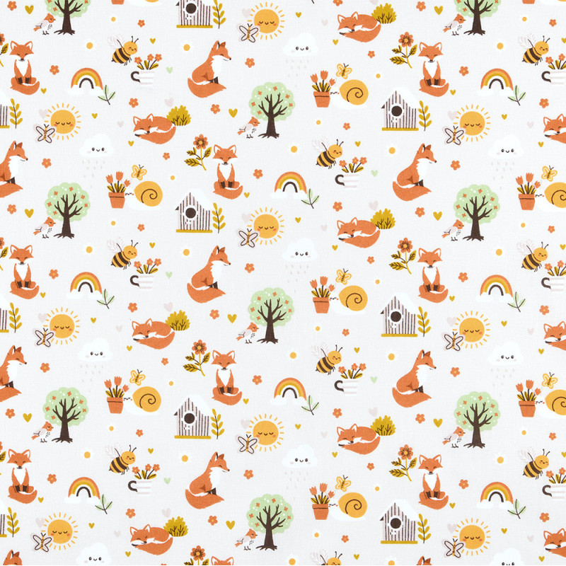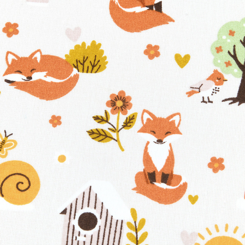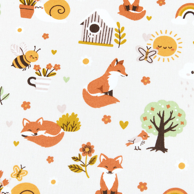 Avec sa largeur de 140 cm, ce tissu coton permet de réaliser de nombreuses réalisations déco. Son motif adorable représentant des petits renards orange sur fond blanc apporte charme et fantaisie, idéal pour créer un univers chaleureux.
