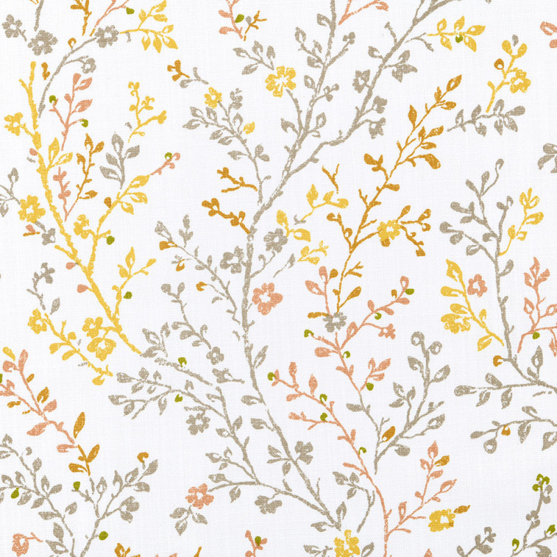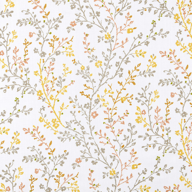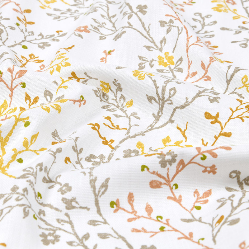 Tissu 100% coton feuillage orange et blanc 160 cm