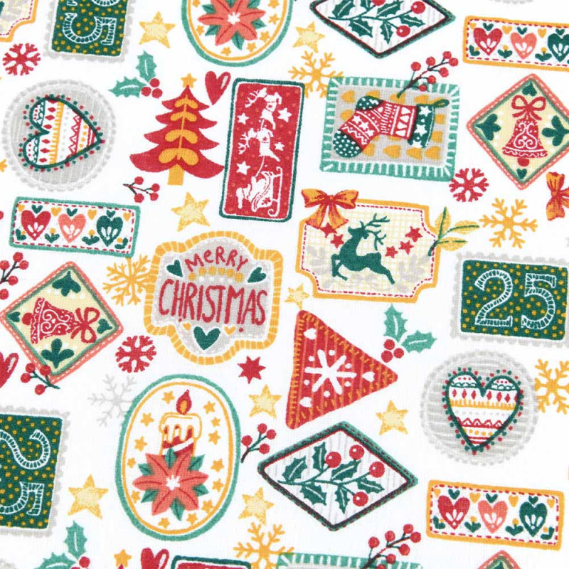 Tissu toile 100% coton imprimé de Noël multicolore 140 cm