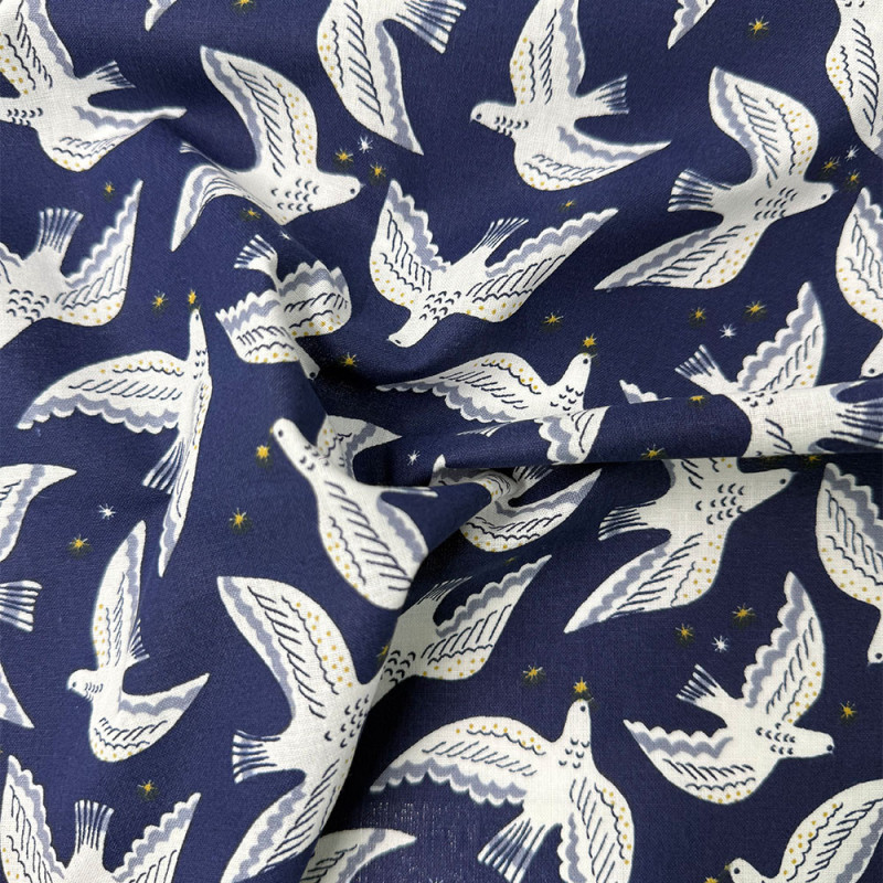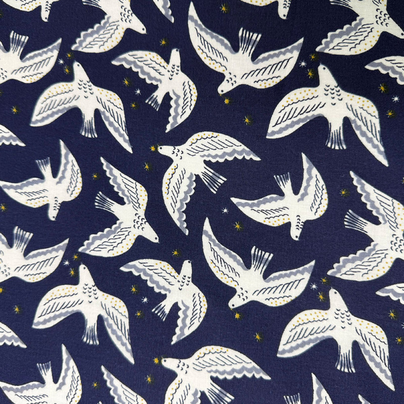 Tissu 100% coton imprimé colombe bleu nuit 150 cm