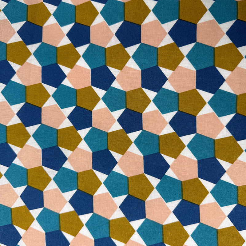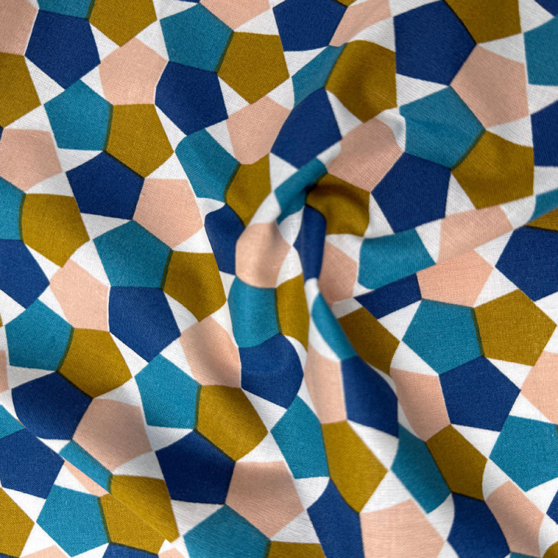 Tissu 100% coton imprimé géométrique bleu 150 cm