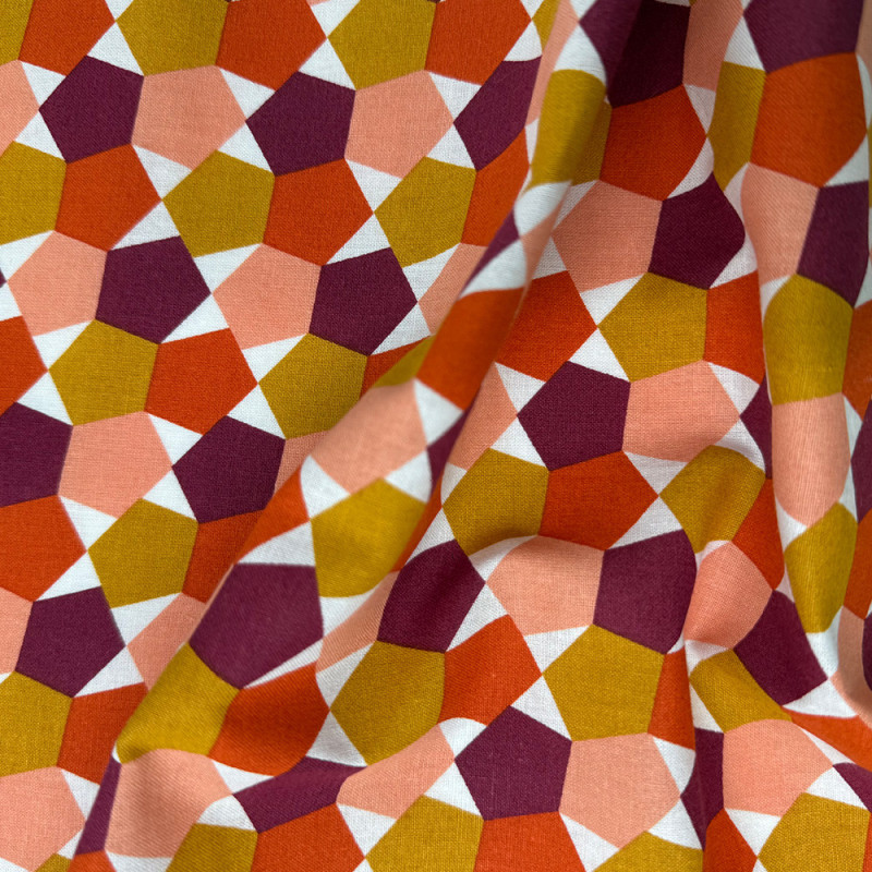 Tissu 100% coton imprimé géométrique rouge 150 cm