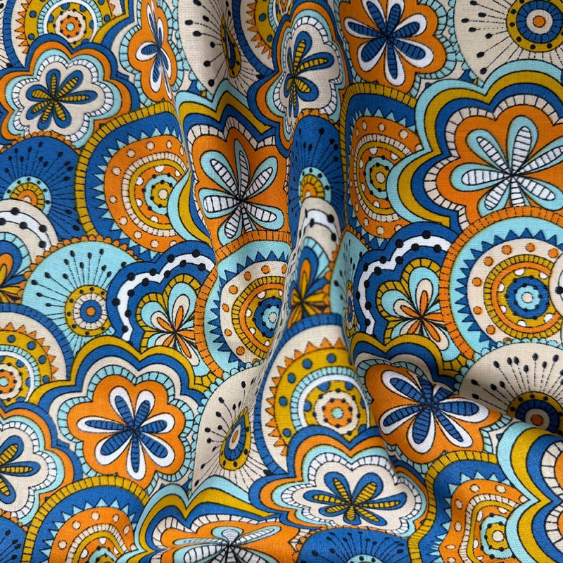 Tissu 100% coton imprimé mandalas bleu 150 cm