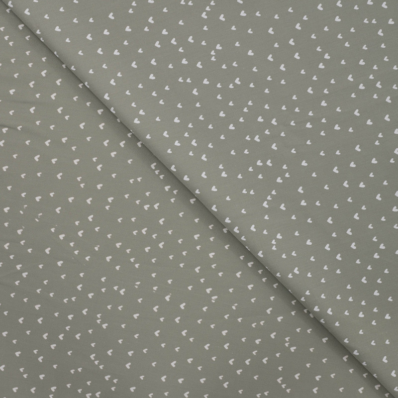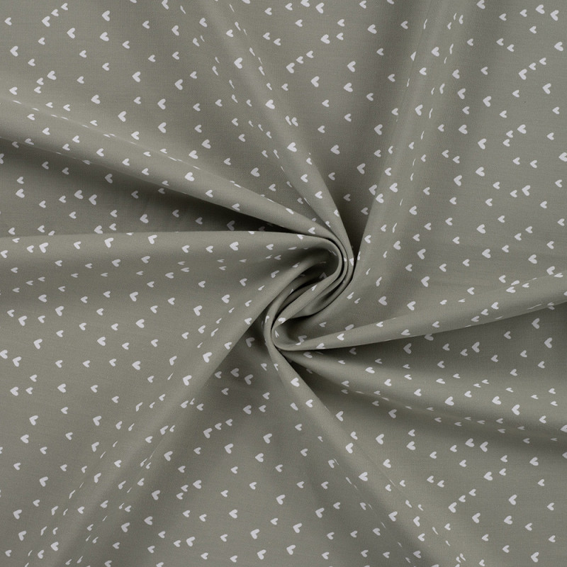 Tissu popeline imprimé cœur vert sauge – Largeur 145 cm