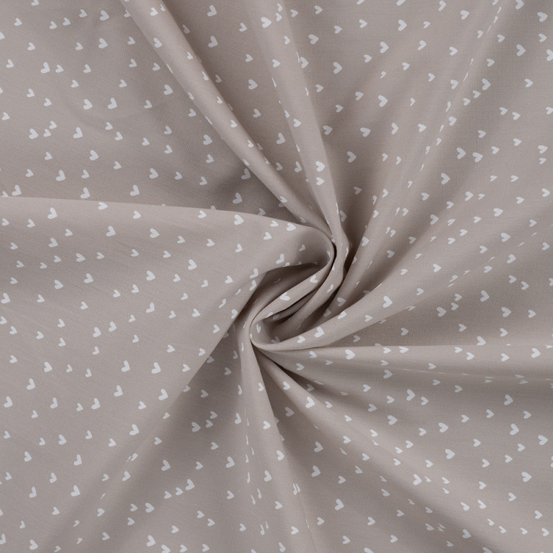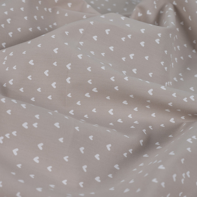Tissu popeline imprimé cœur beige – Largeur 145 cm