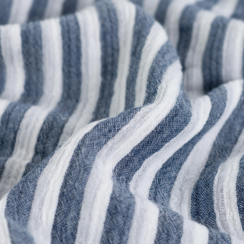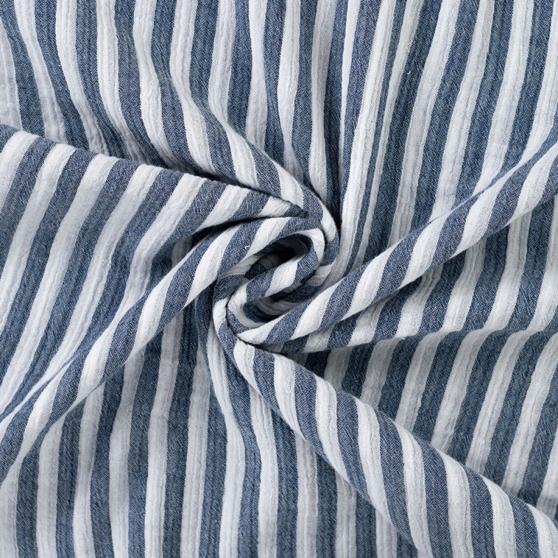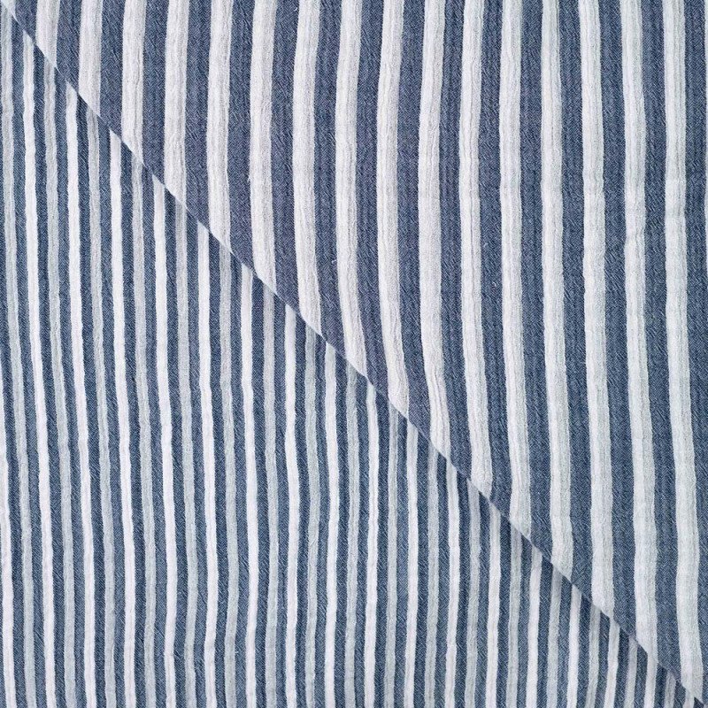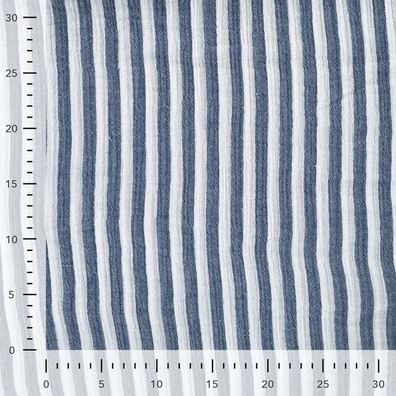 Tissu double gaze à rayure bleu marine – Largeur 135 cm