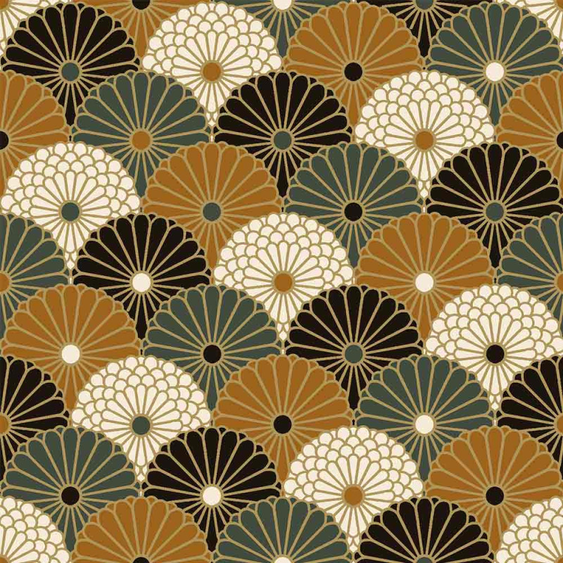 Tissu percale couleur bronze à motif éventail en 150 cm. Ce tissu certifié Oekotex sera parfait pour toutes vos créations.