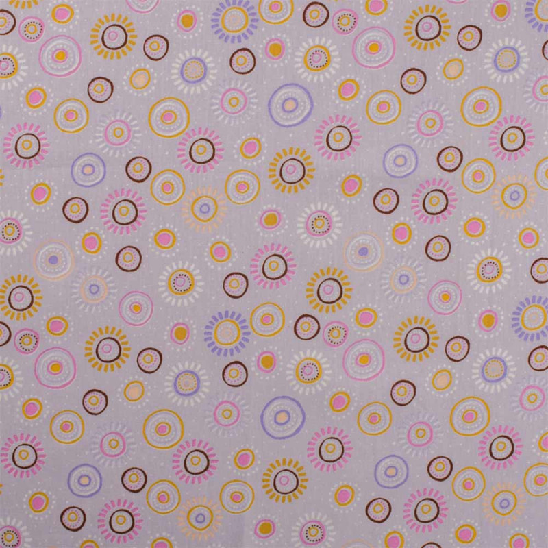 Tissu popeline parme motif mandala multicolore en 150 cm de large. Il est idéal pour vos confections et idées déco pour la maison.