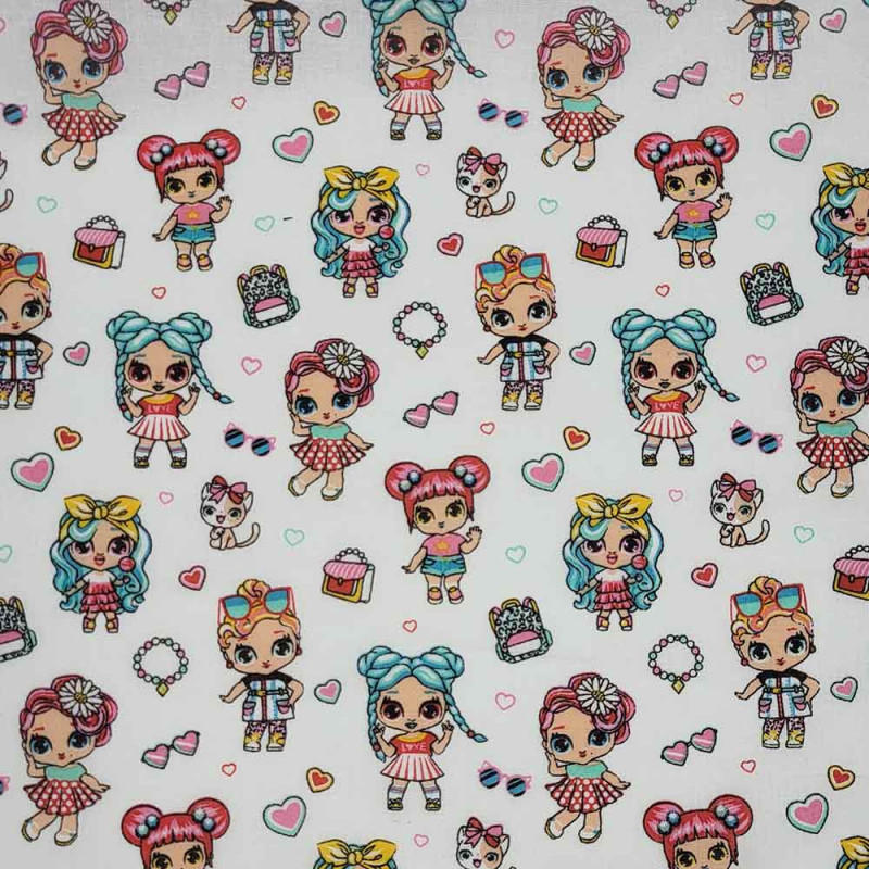 Tissu percale imprimé fillette blanc 150 cm