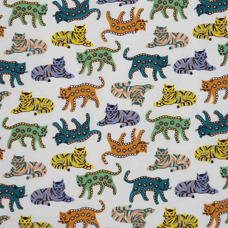 Découvrez notre captivant tissu en coton, orné d'un motif animalier aux nuances tricolores. Ajoutez une touche d'audace et de style à votre décoration avec ce tissu, idéal pour créer des espaces dynamiques et tendance dans une chambre d'enfant.