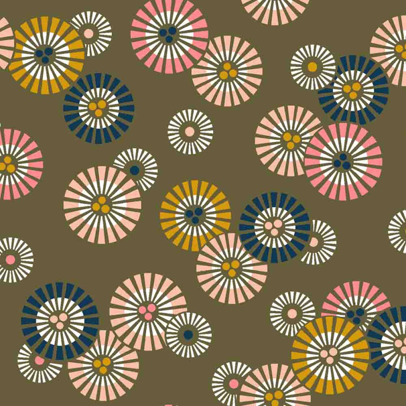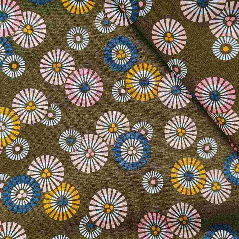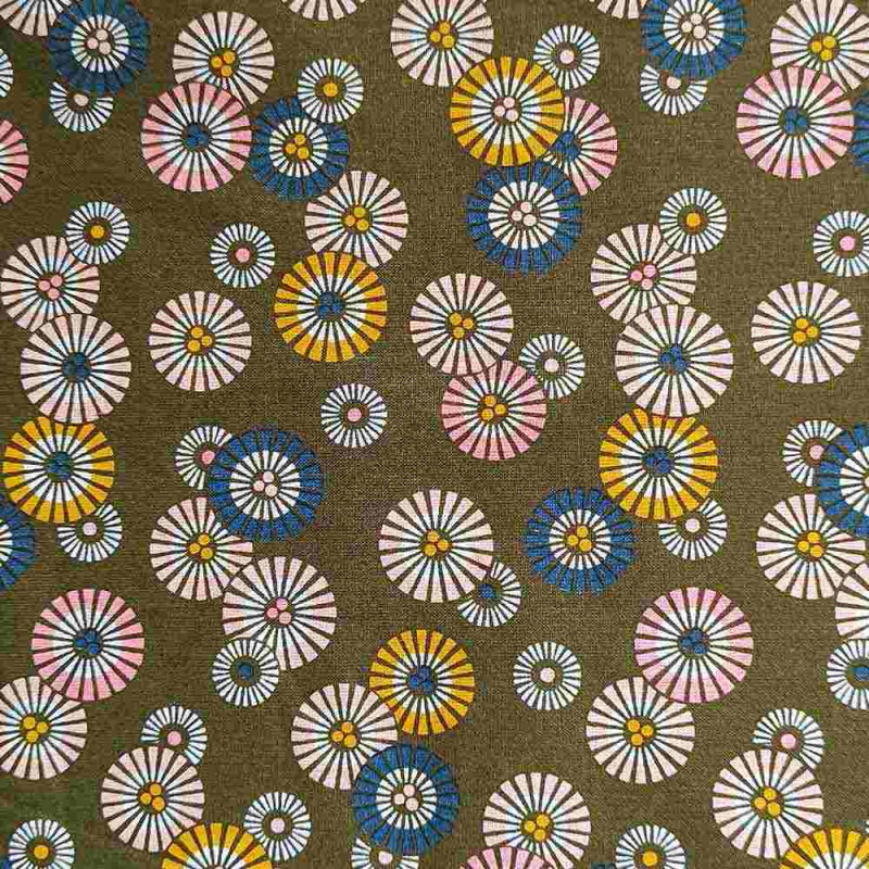 Tissu 100% coton percale imprimé japonais vert kaki 150 cm