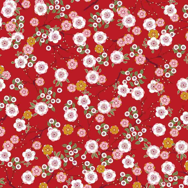 Tissu 100% coton japonais floral rouge 150 cm