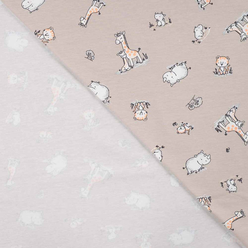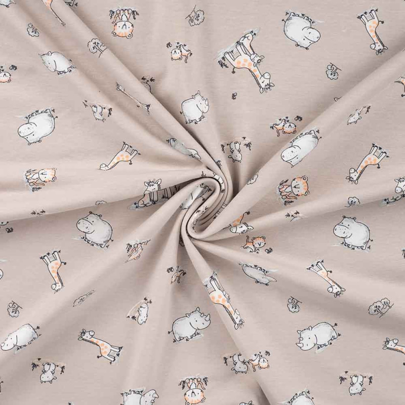 Tissu jersey imprimé girafe beige 150 cm