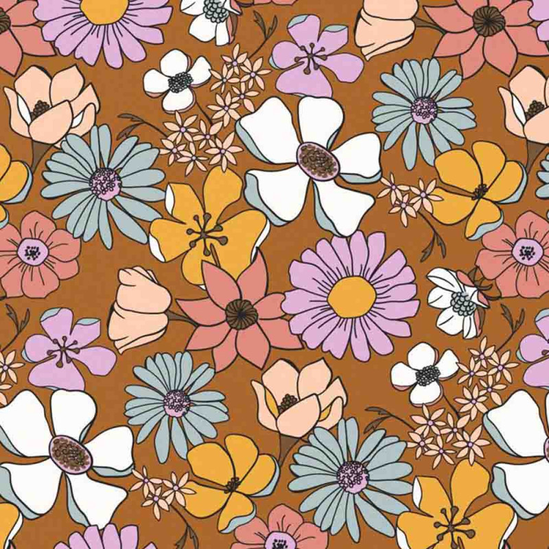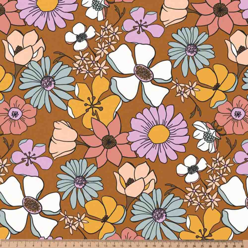 Tissu 100% coton popeline floral orange 145 cm